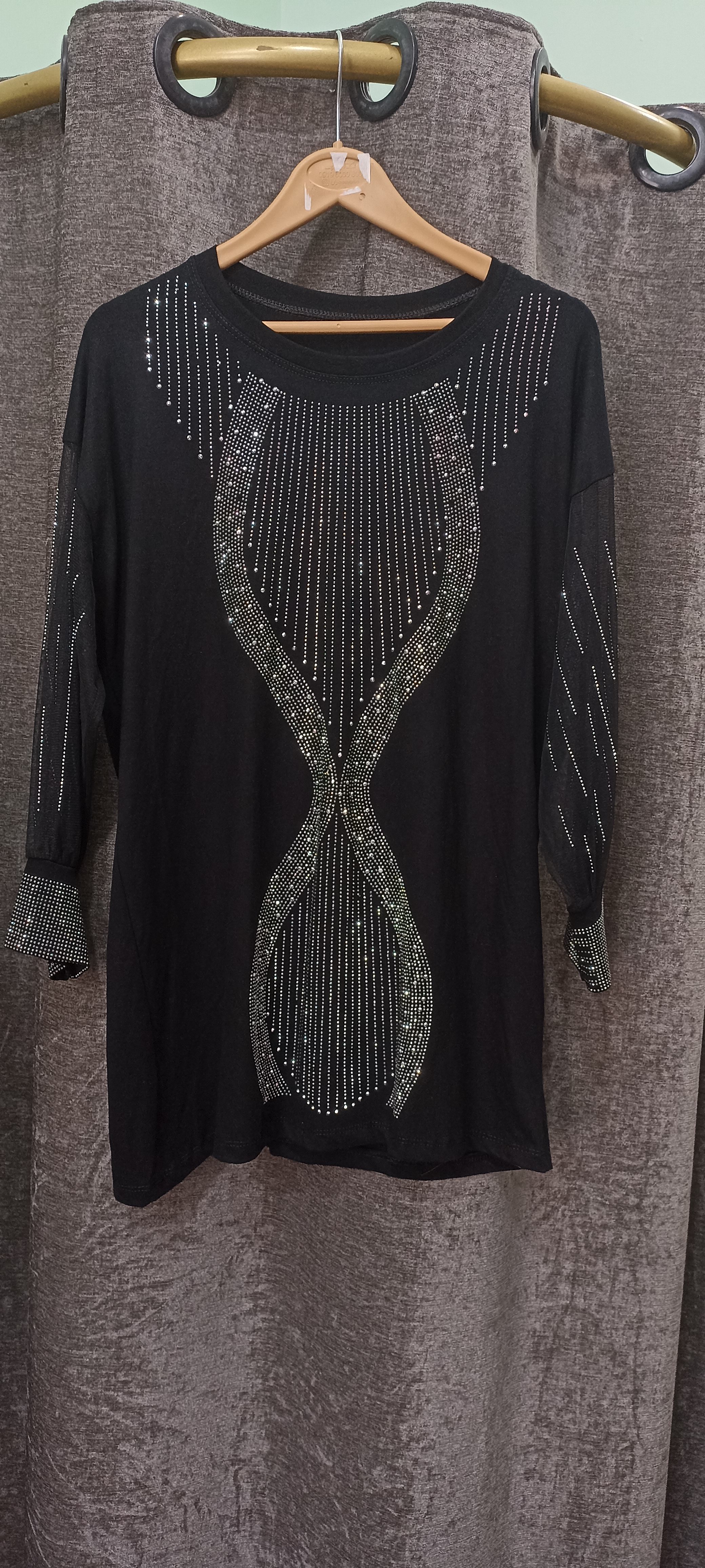 شومیز زنانه آستین حریر نگین کاری شده فری سایز