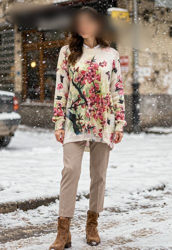 بلوز بافت وارداتی زنانه فری سایز تا ۴۶۴۸ طرح شکوفه