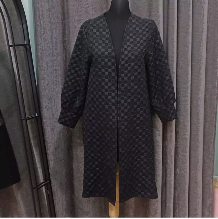 مانتو زنانه مجلسی فری سایز تا۴۶ جنس ژاکارد پفکی قد کار ۱۰۷ فاصله بین دو زیر بغل ۵۹ قد آستین از سرشانه ۵۵