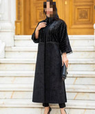 دیدن محصولات مرتبطجنس کار مخمل شانل و مخمل ترک طرحدار ترکیبی پیش سنگ دوزی و نوار آویز