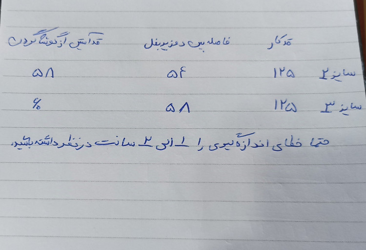 مشخصات کار در اسلاید آخر ذکر شده حتماً یک الی دو سانت خطای اندازهگیری رو در نظر بگیرید