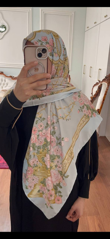 روسری ابریشم توییل زنانه دور دست دوز قواره ۱۴۰