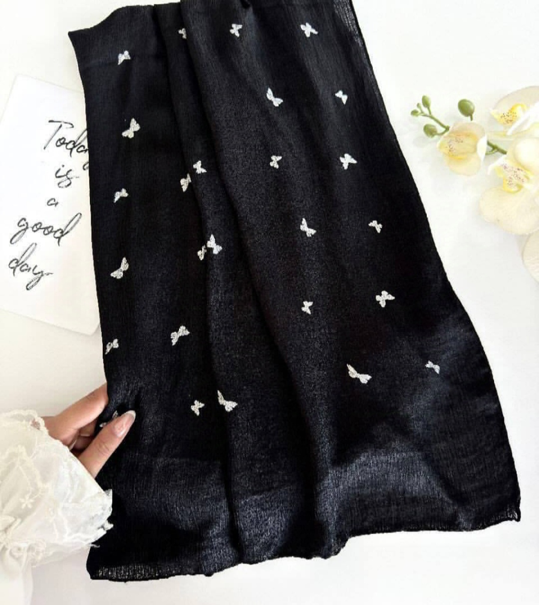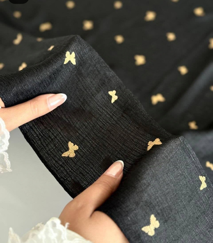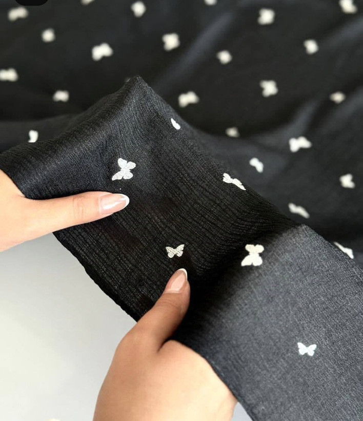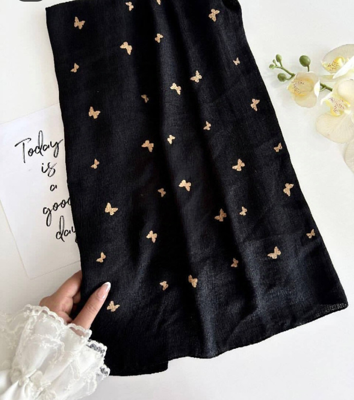 شال نخی زنانه جنس درختی چاپ پروانه دار