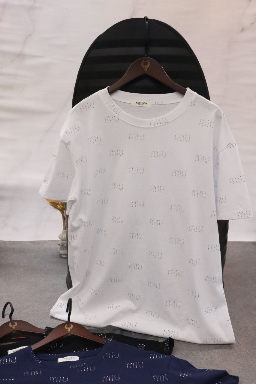 تیشرت زنانه وارداتی نگین دار فری سایز تا ۴۴