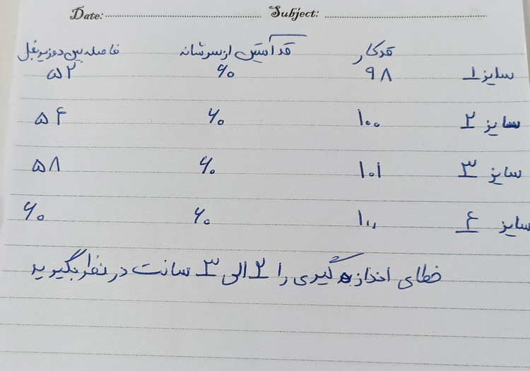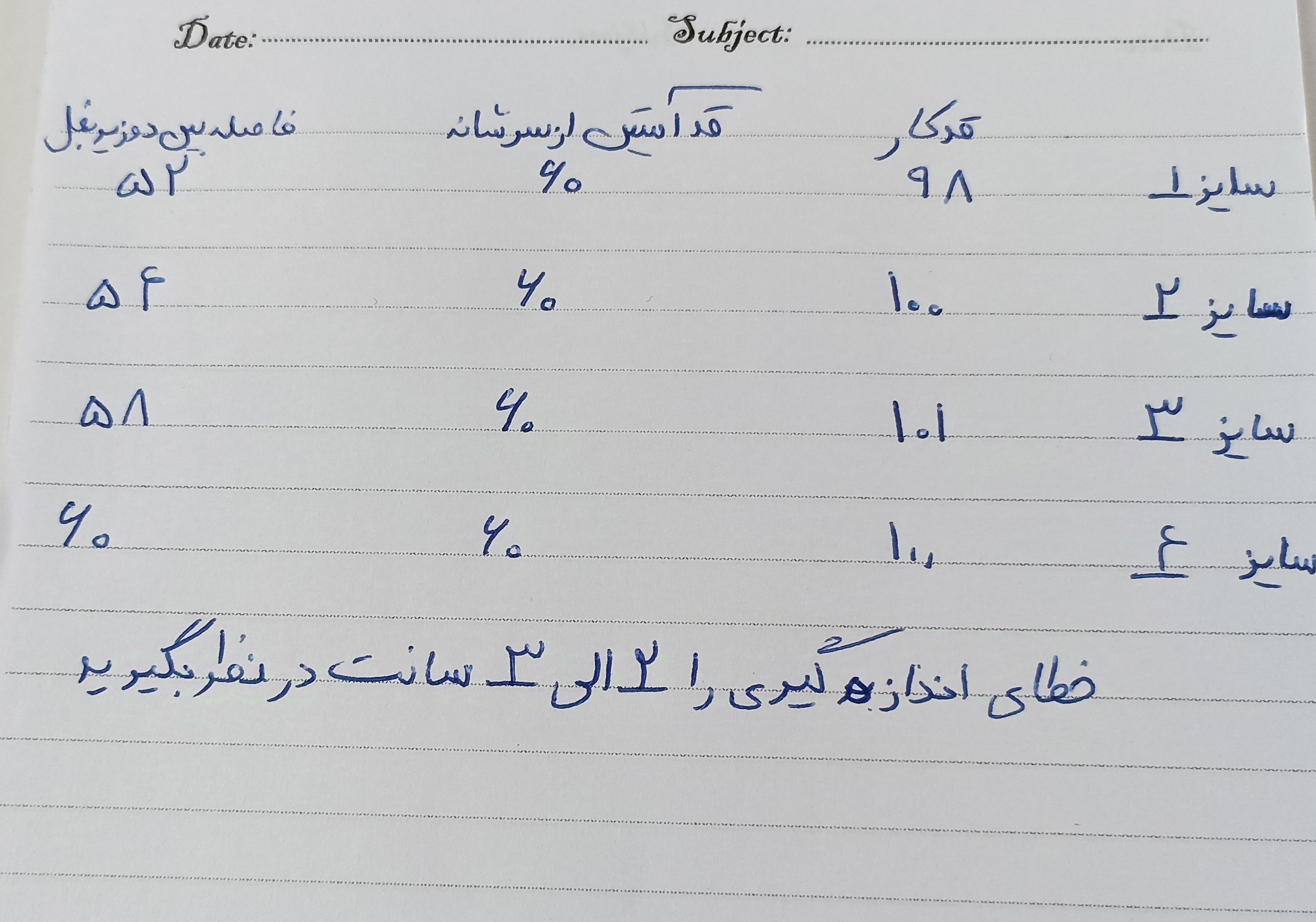 حتماً دو الی سه سانت خطای اندازهگیری رو در نظر داشته باشید