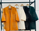 مانتو کتی مازراتی نگین کاری شده طرح برگ دارای دو سایز مناسب تا ۴۶
