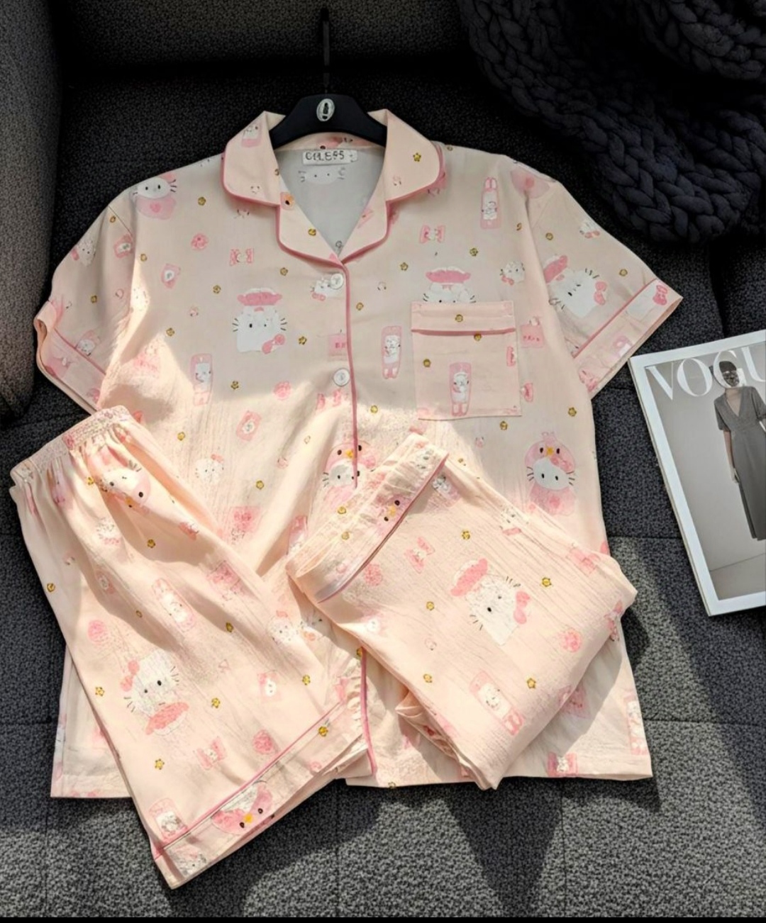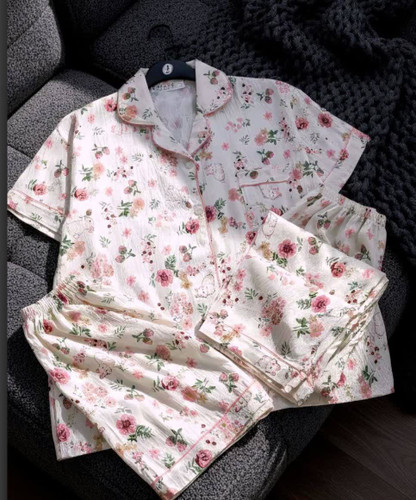 ناموجودست سه تیکه لباس راحتی زنانه وارداتی فری سایز تا 44 طرح کیتی صورتی