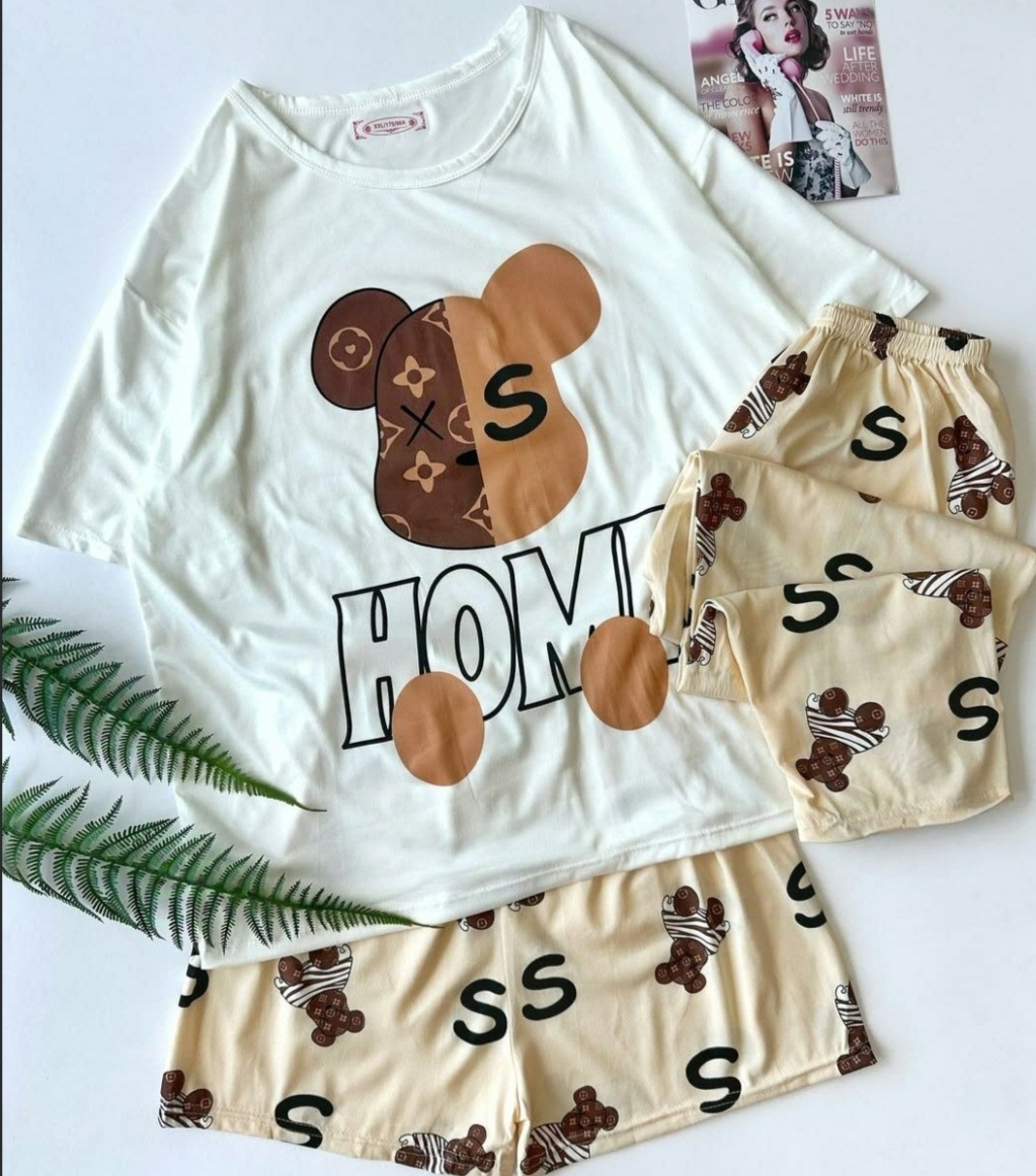ناموجودست سه تیکه لباس راحتی زنانه وارداتی فری سایز تا 44 طرح خرسHome