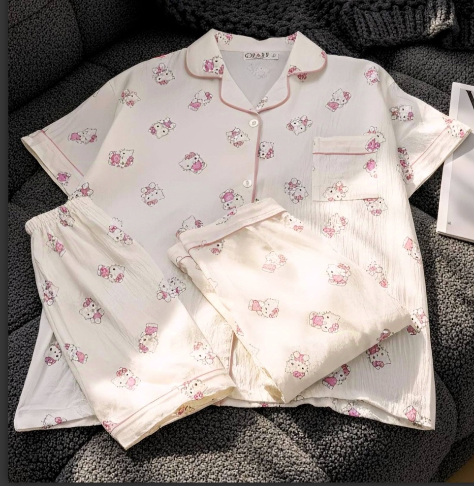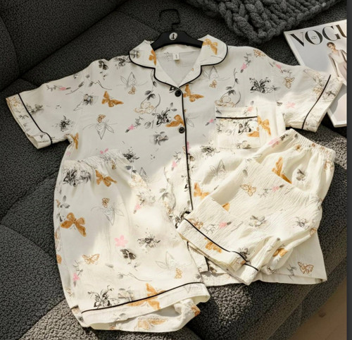 ست سه تیکه لباس راحتی زنانه طرح پروانه وارداتی فری سایز تا 44