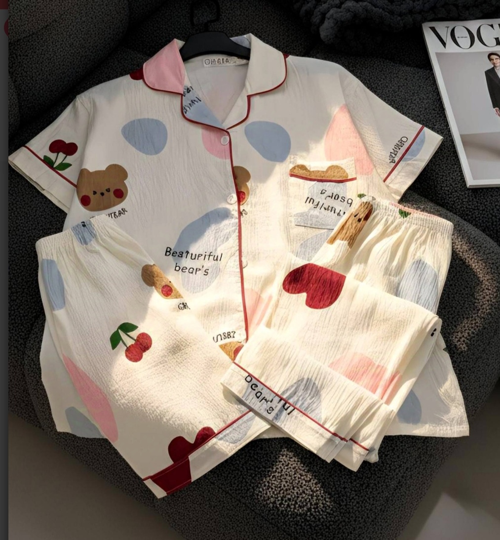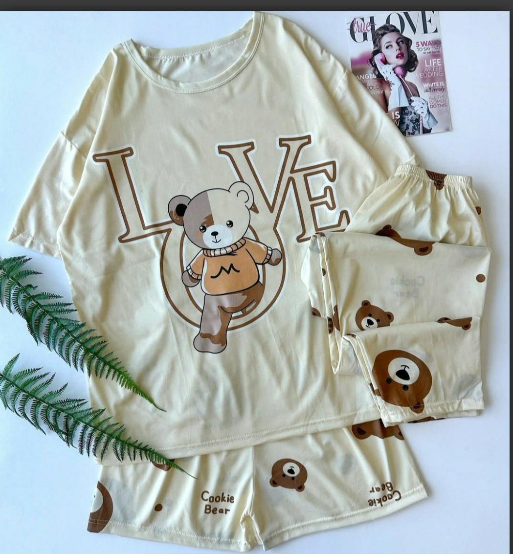 ست سه تیکه لباس راحتی زنانه وارداتی فری سایز تا 44 طرح خرس love