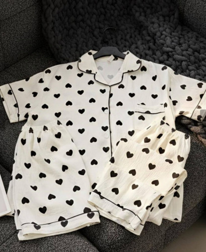 ست سه تیکه لباس راحتی زنانه وارداتی فری سایز تا 44 طرح قلب مشکی